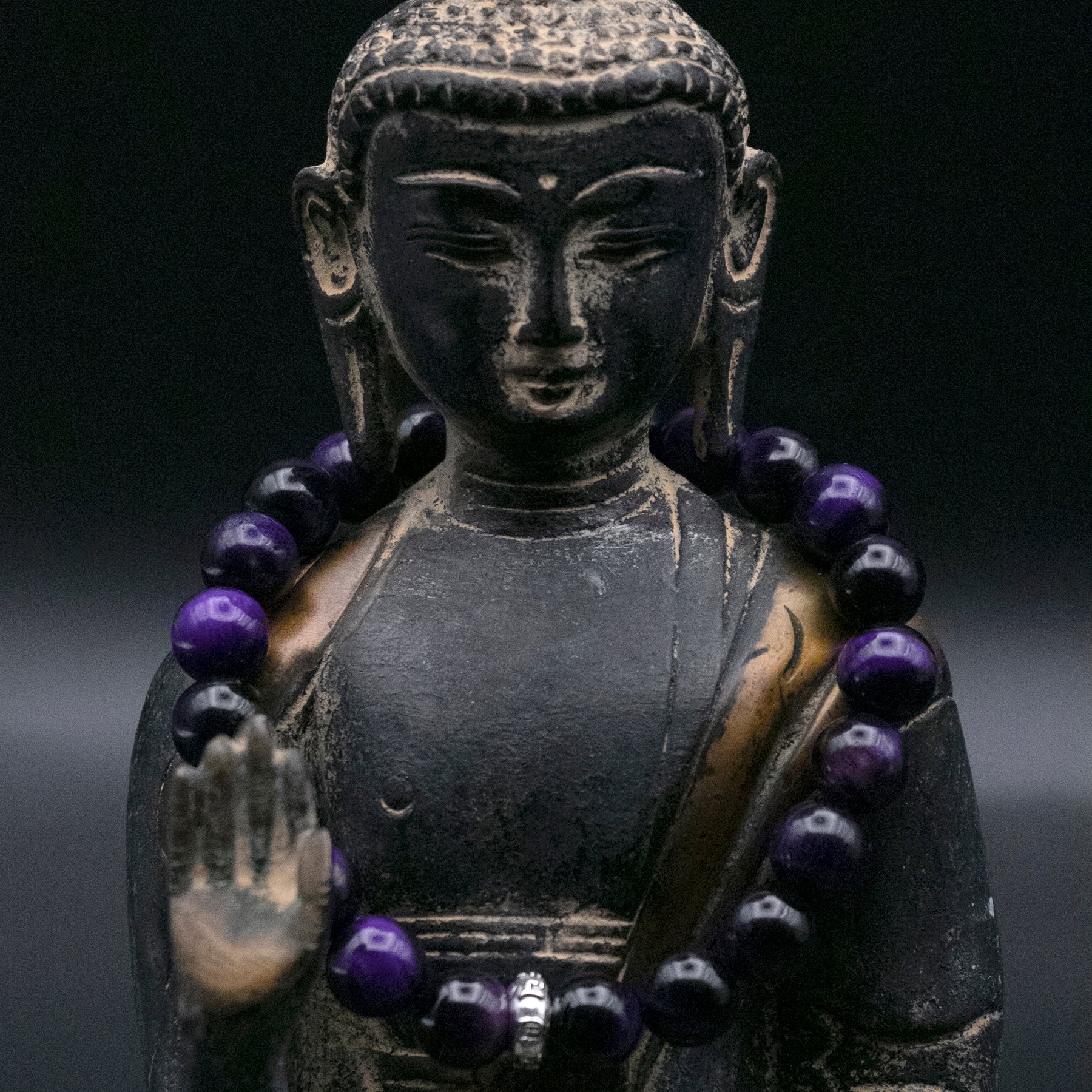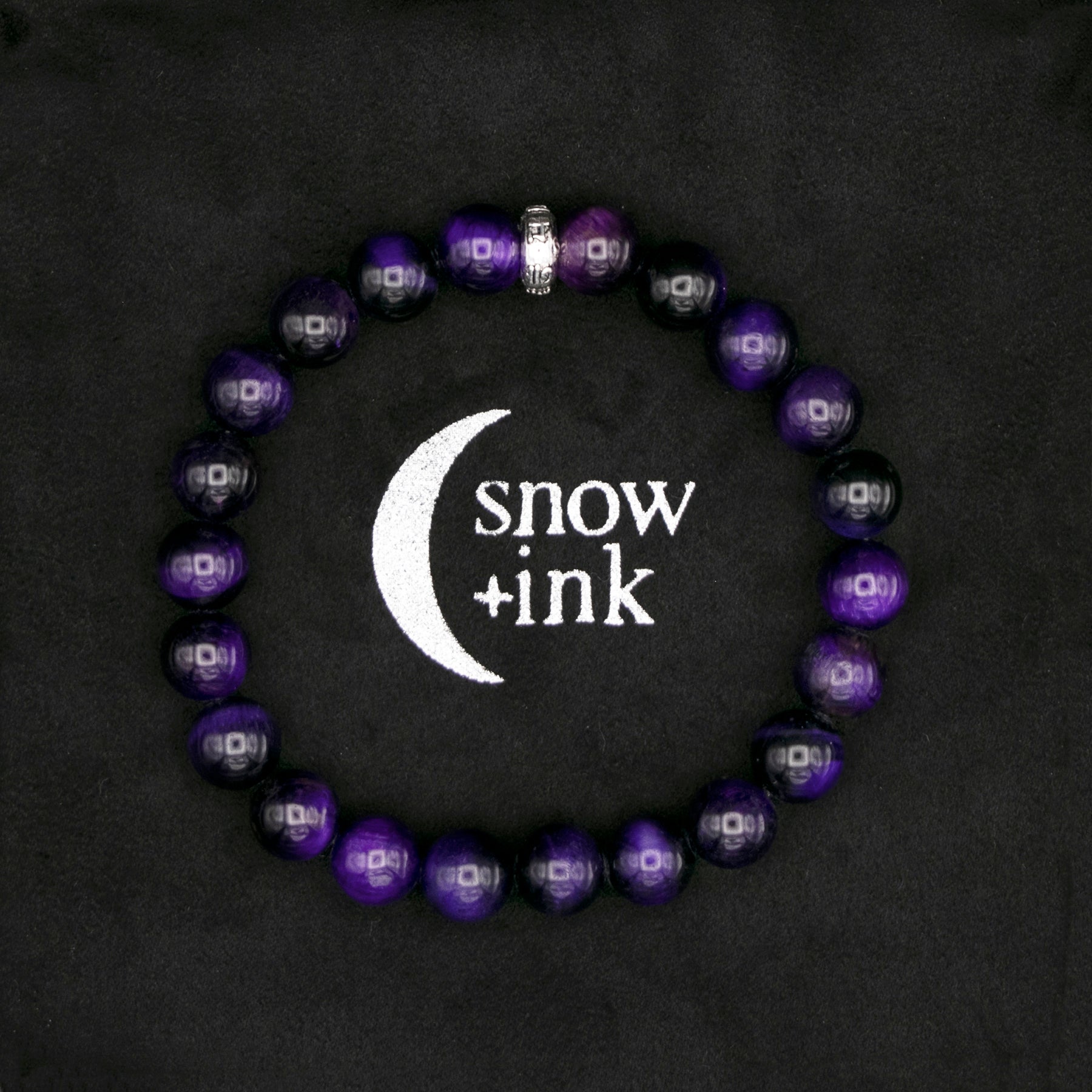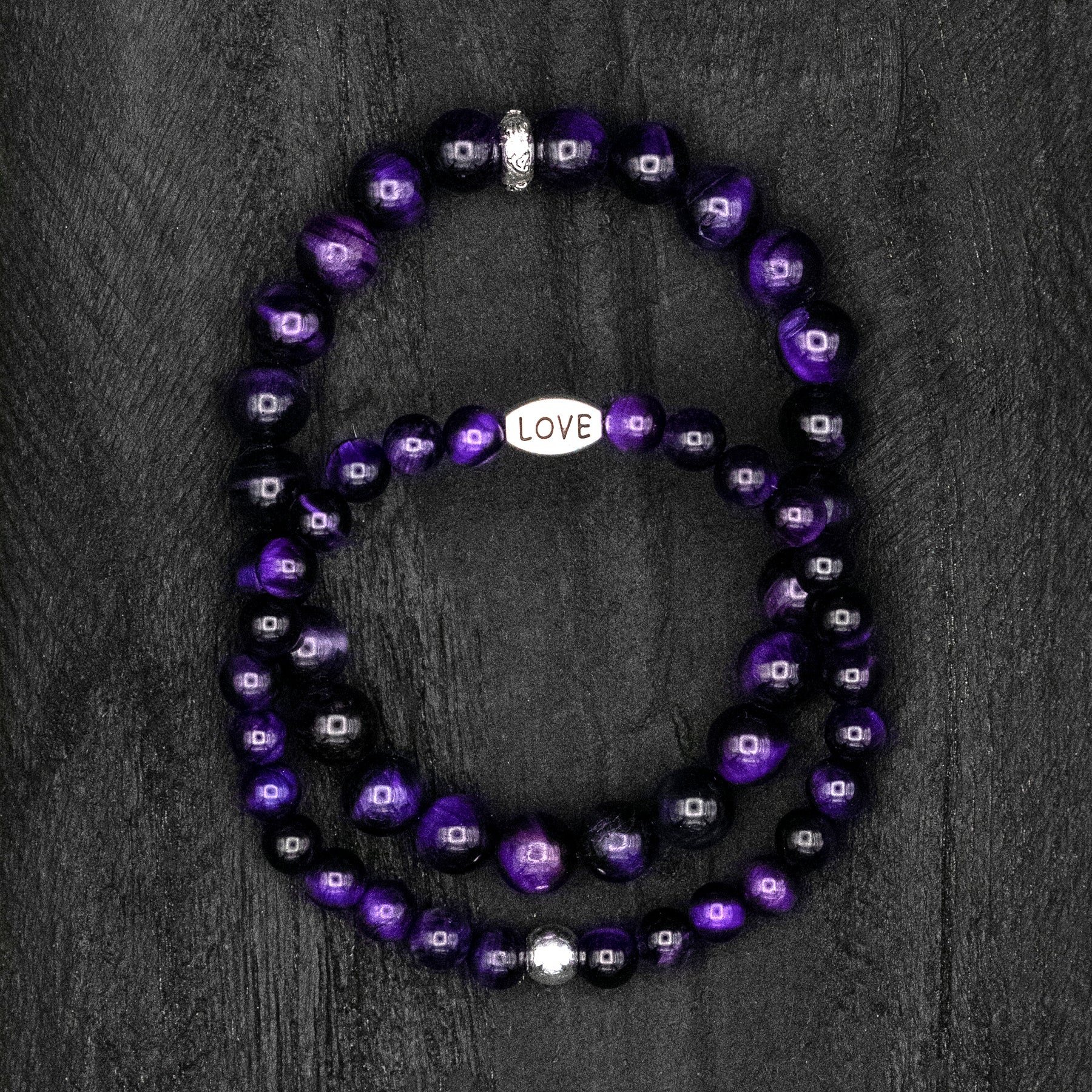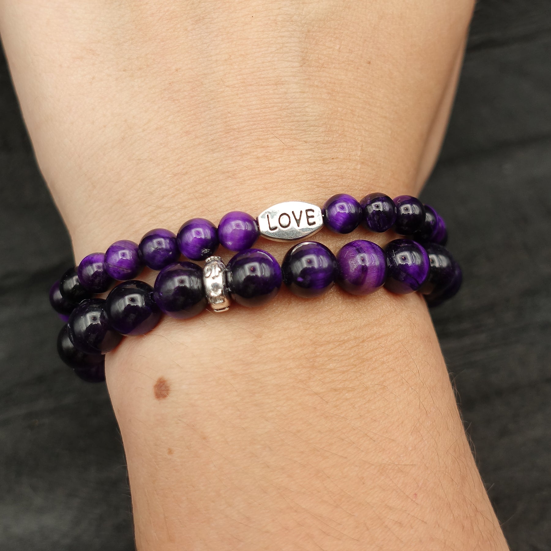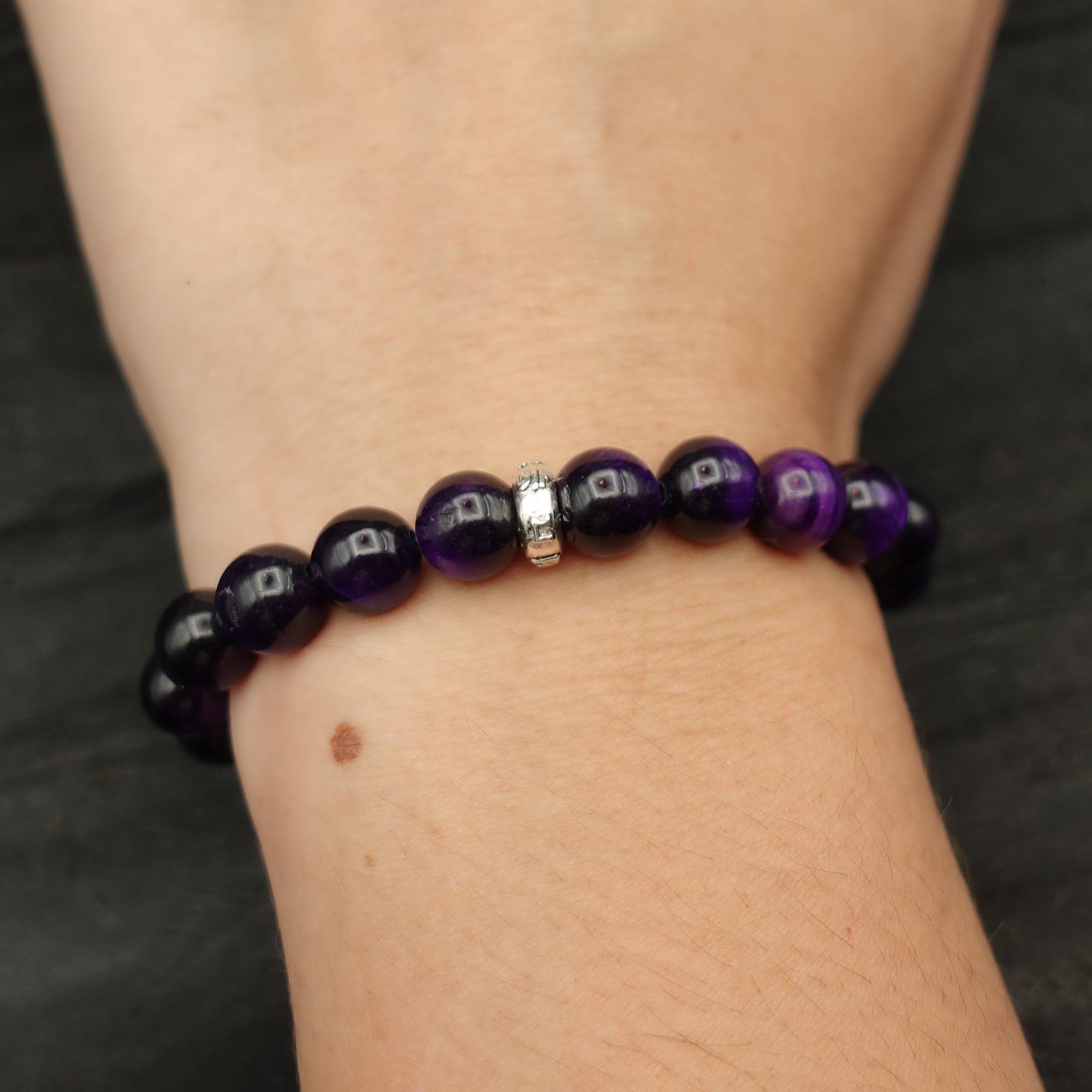 Purple Tiger's Eye 8mm beads with sterling silver spacer bead. This bead is color enhanced to get this deep purple color.