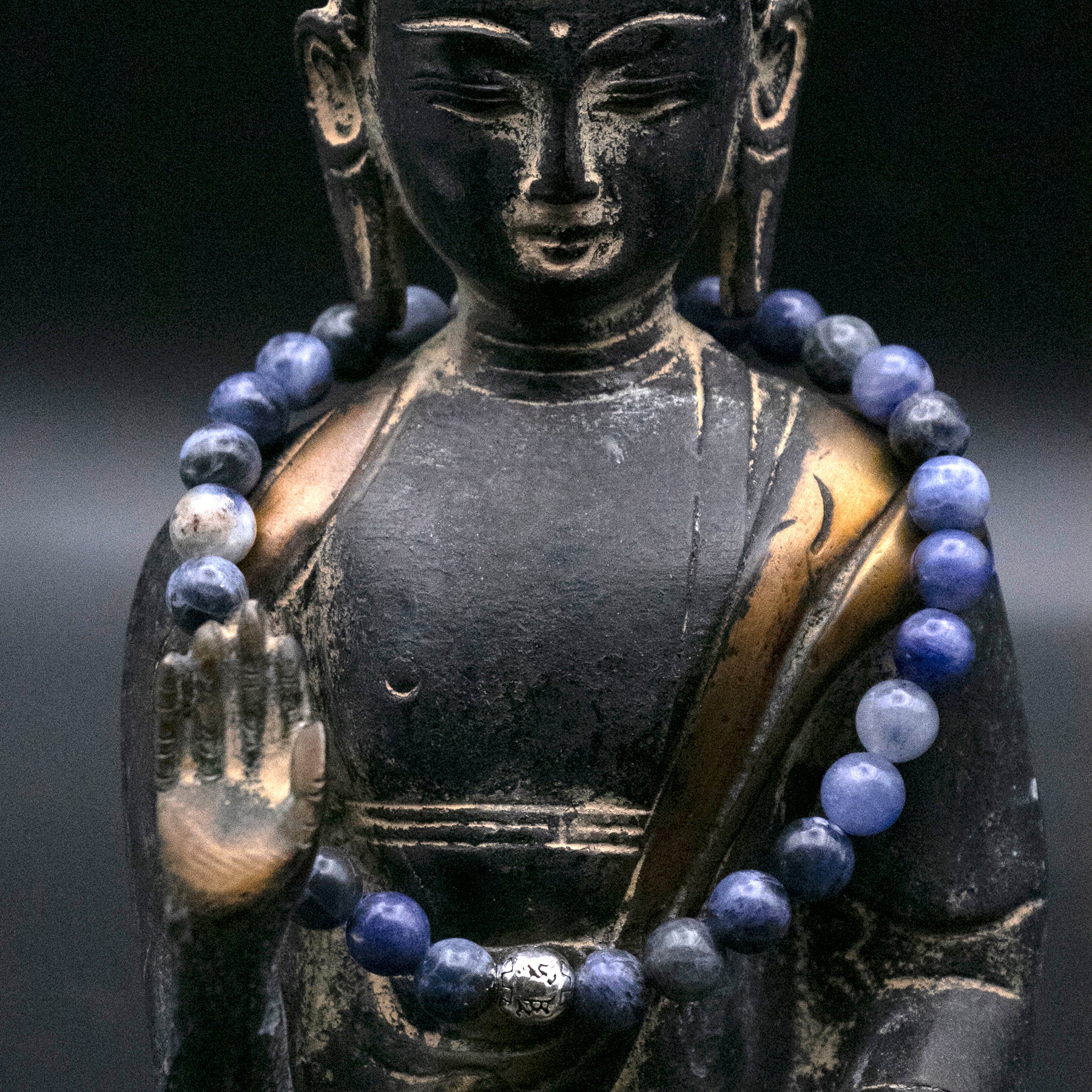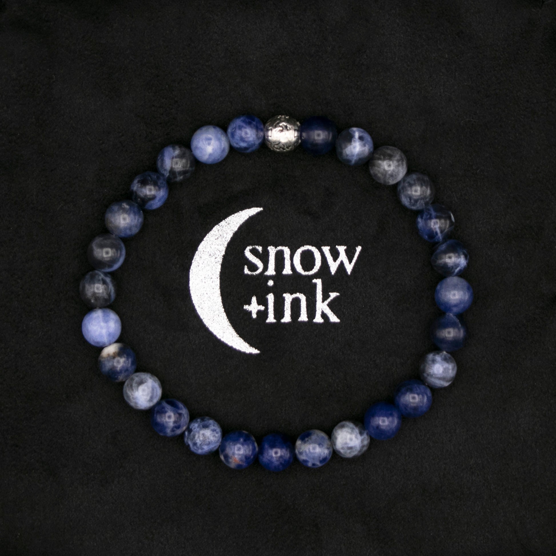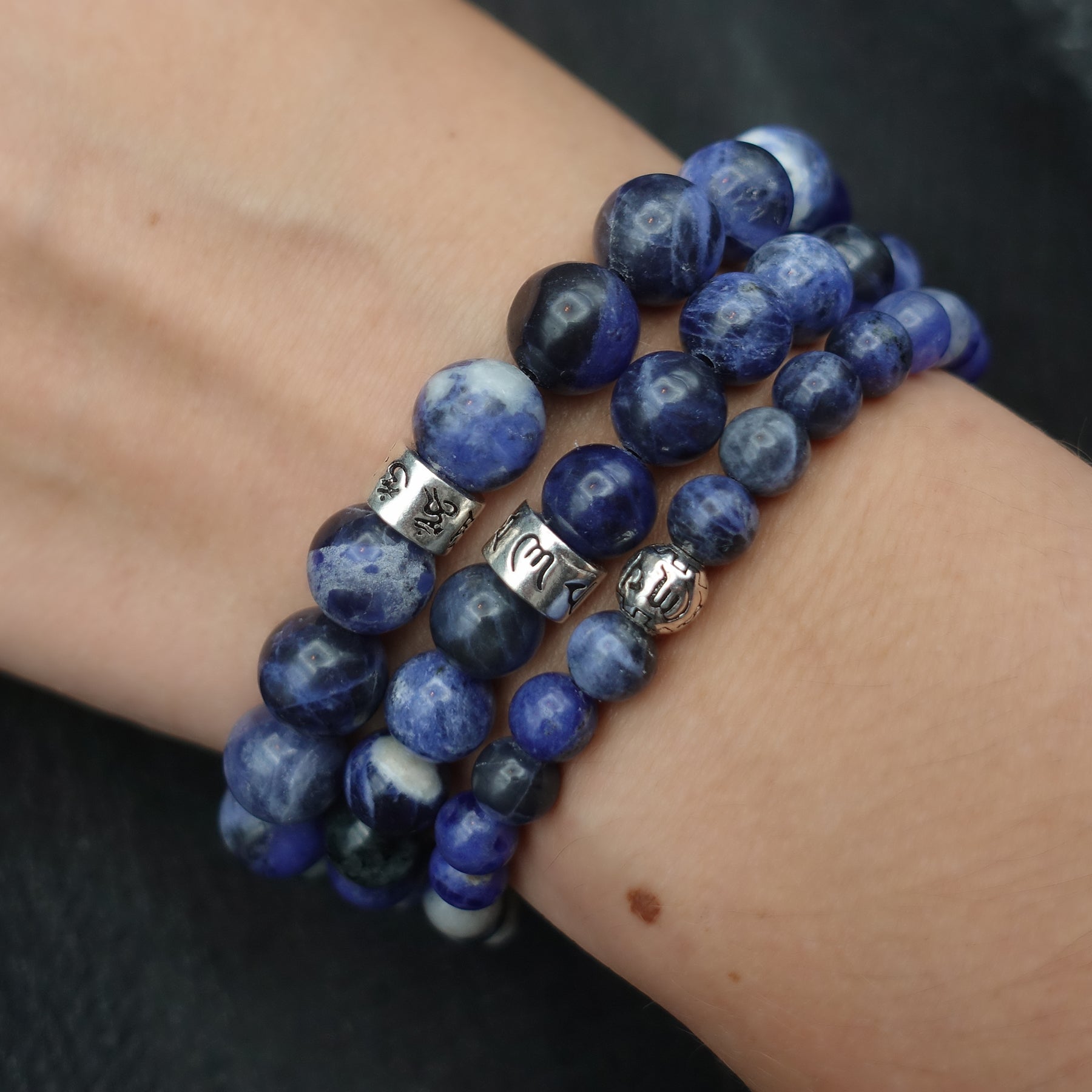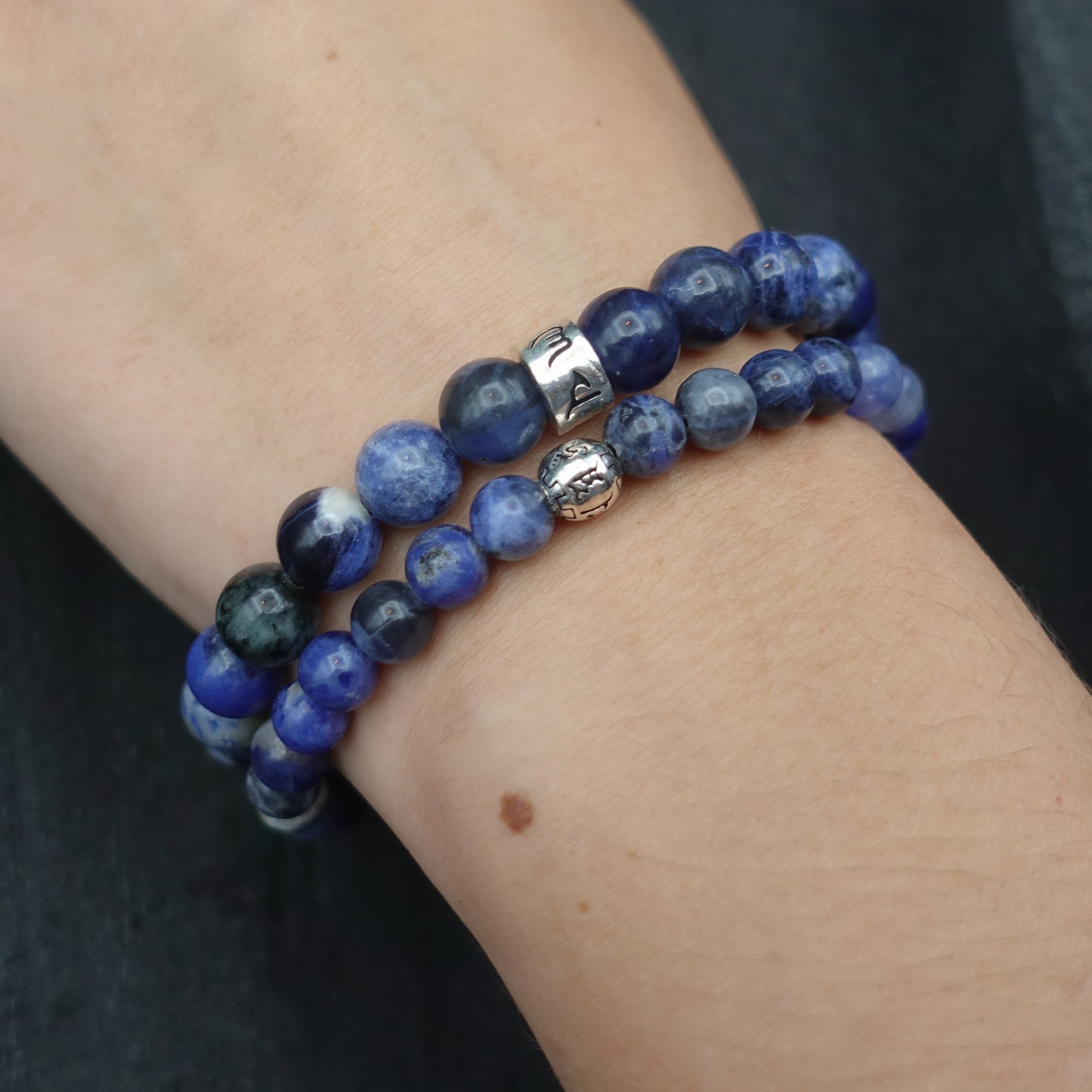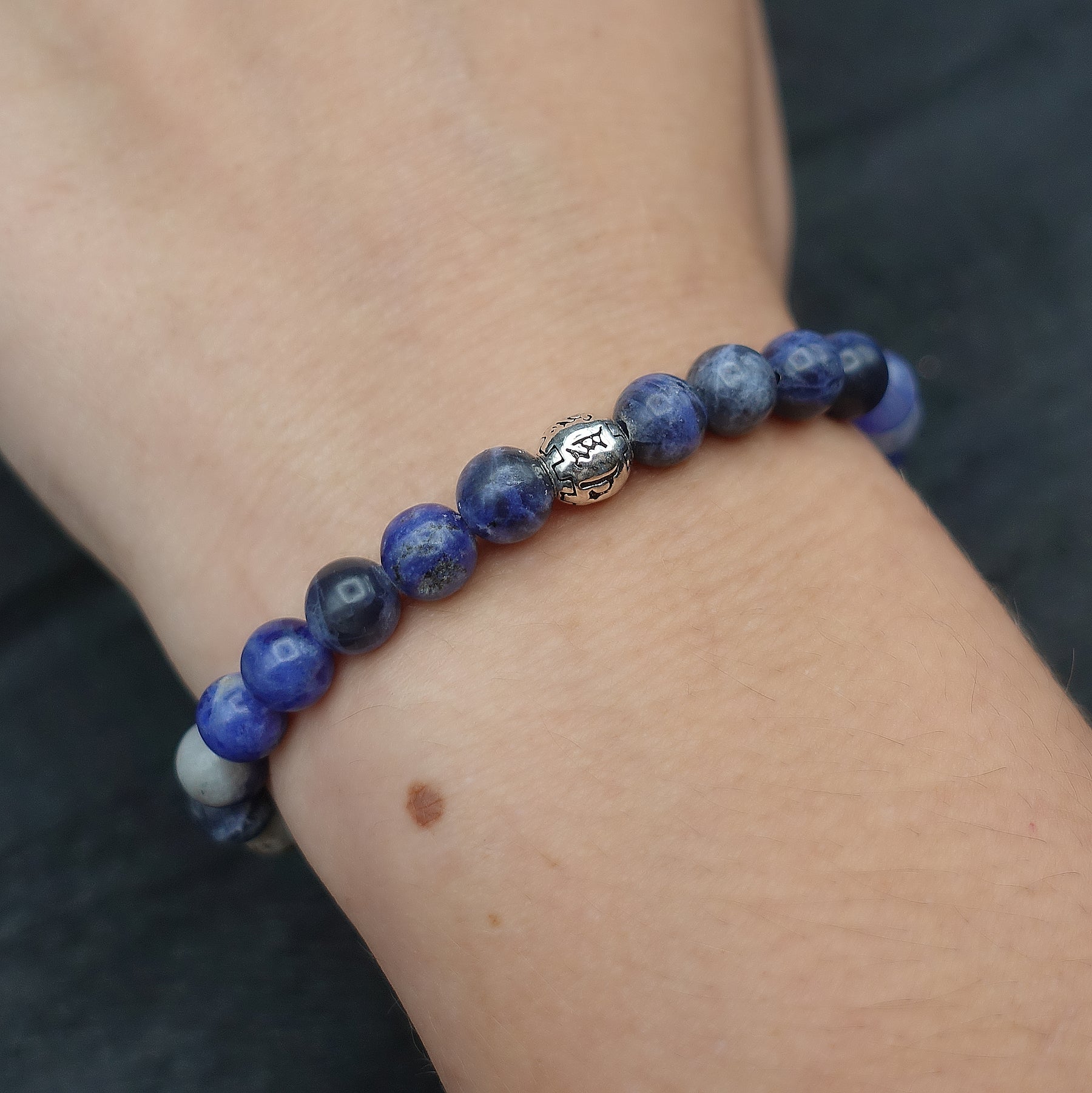 6mm Sodalite Beads and 1 Sterling bead on a strong elastic cord.